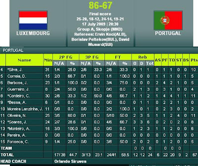 Depois da vitória no encontro inaugural do europeu masculino de sub-20, a selecção de Orlando Simões saiu derrotada do seu embate da segunda jornada, contra o Luxemburgo, por 86-67. Foi um resultado algo inesperado, tendo em conta os resultados verificados no dia anterior.